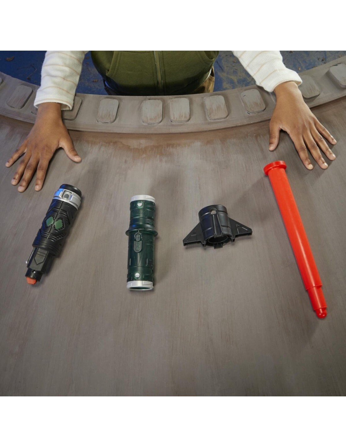 Imagina emocionantes aventuras en una galaxia muy, muy lejana con el sable de luz de Baylan Skoll de la línea Lightsaber Forge Kyber Core de Star Wars Este sable de luz infantil tiene un diseño inspirado en el personaje, así como una hoja naranja que se extiende y se recoge. Además, los sables de luz Lightsaber Forge cuentan ahora con coberturas traslúcidas inspiradas en los cristales kyber que vemos en cada sable de luz de los Jedi. ¡Usa la hoja, tapa, cobertura y núcleo incluidos para crear el sable de luz de Baylan Skoll! ¡Este set cuenta con piezas que son compatibles con toda la línea Star Wars Lightsaber Forge y que podrás intercambiar y personalizar para crear miles de combinaciones! (El número total de combinaciones requiere de todos los productos Lightsaber Forge. Los productos adicionales de la línea Lightsaber Forge se venden por separado. Sujeto a disponibilidad.) Usa este sable de luz infantil como parte de tu disfraz Star Wars, ofrécelo como regalo temático de Star Wars a niños y niñas, o añádelo a cualquier colección.
