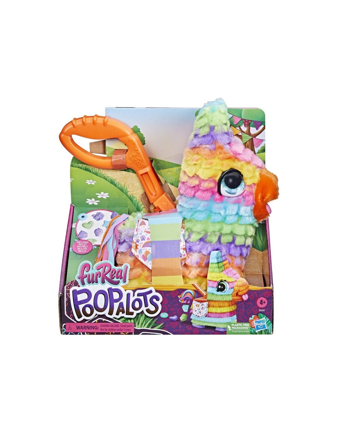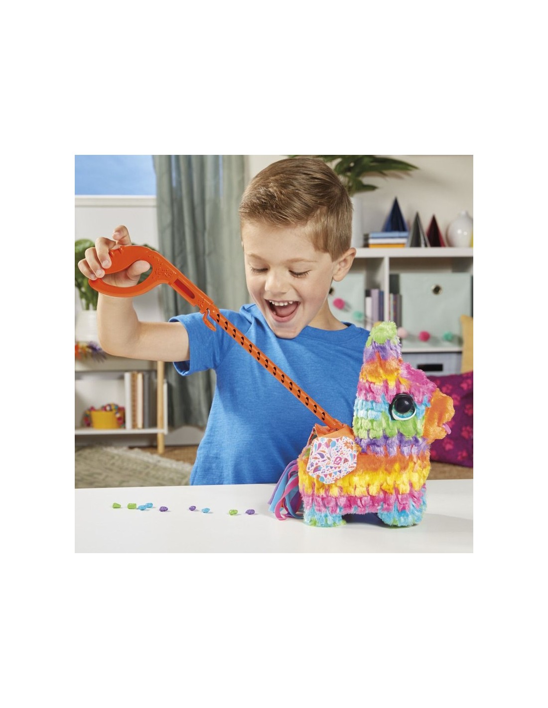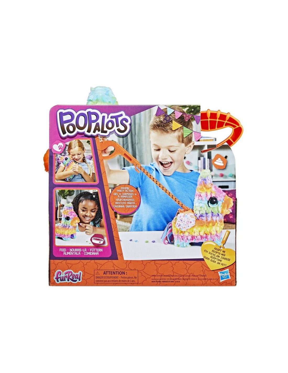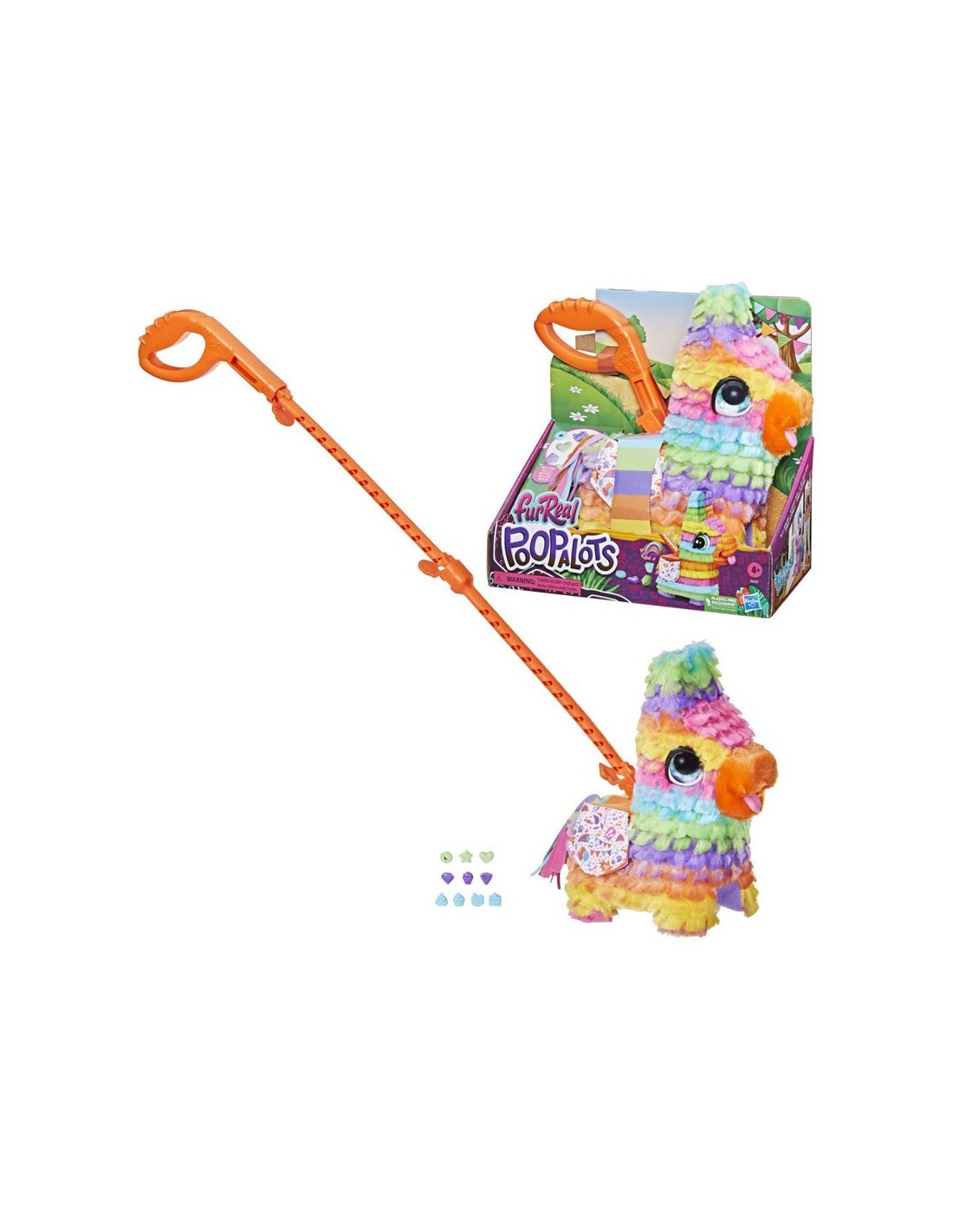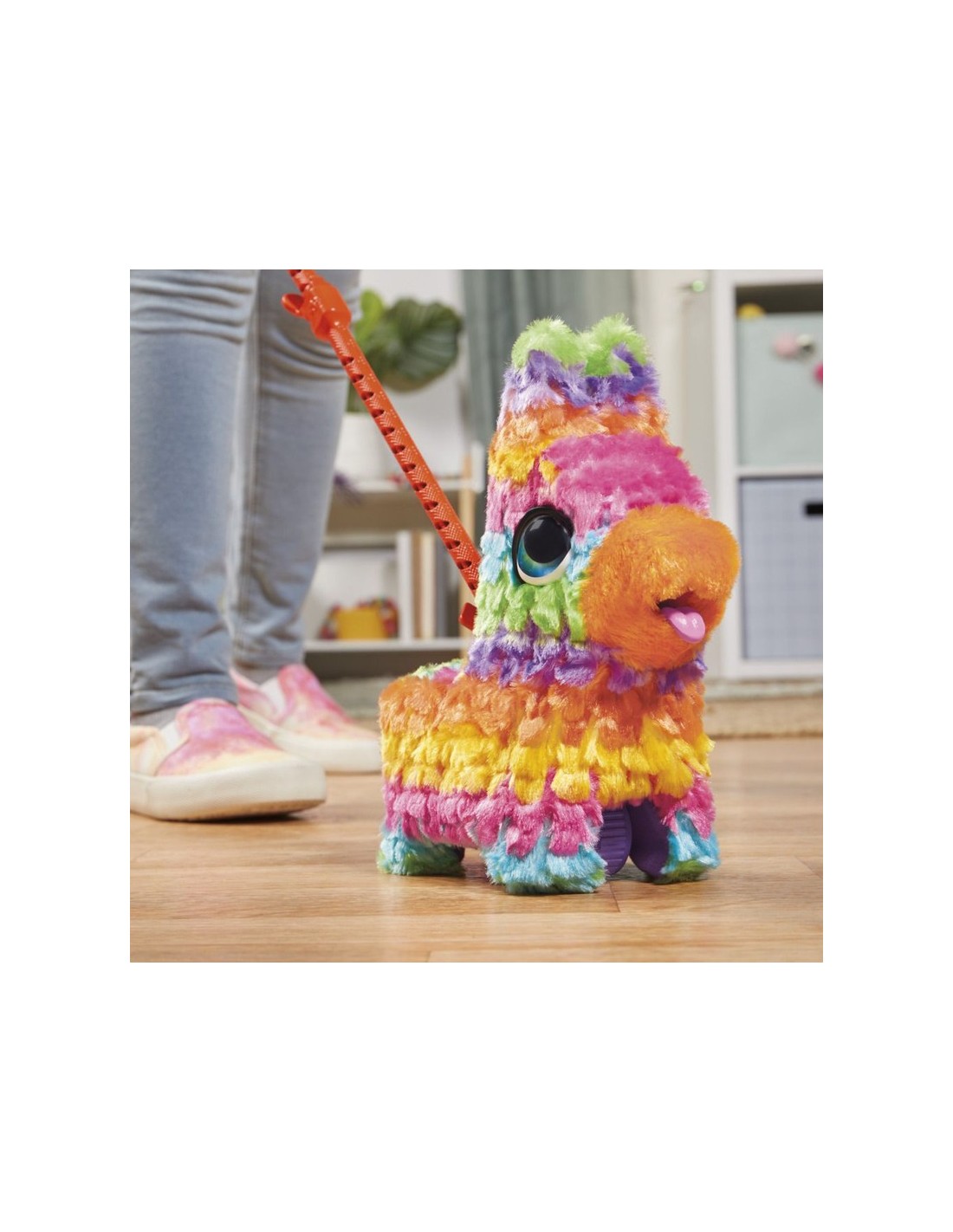 ¡Piñata es un juguete de peluche que camina, hace popó y está preparado para ir de fiesta! Dale unas cuantas golosinas de juguete (incluidas) a esta mascota interactiva, luego monta su correa y pónsela para llevarla a pasear. Cuando se empuja para que camine, la mascota empieza a hacer sus necesidades, ¡dejando un rastro a su paso! La mascota Piñata de furReal Poopalots viene con un estuche de golosinas que facilita el manejo de las golosinas... ¡y de las cacas! Esta mascota interactiva está llena de sorpresas, es divertida de abrazar y es un gran regalo.