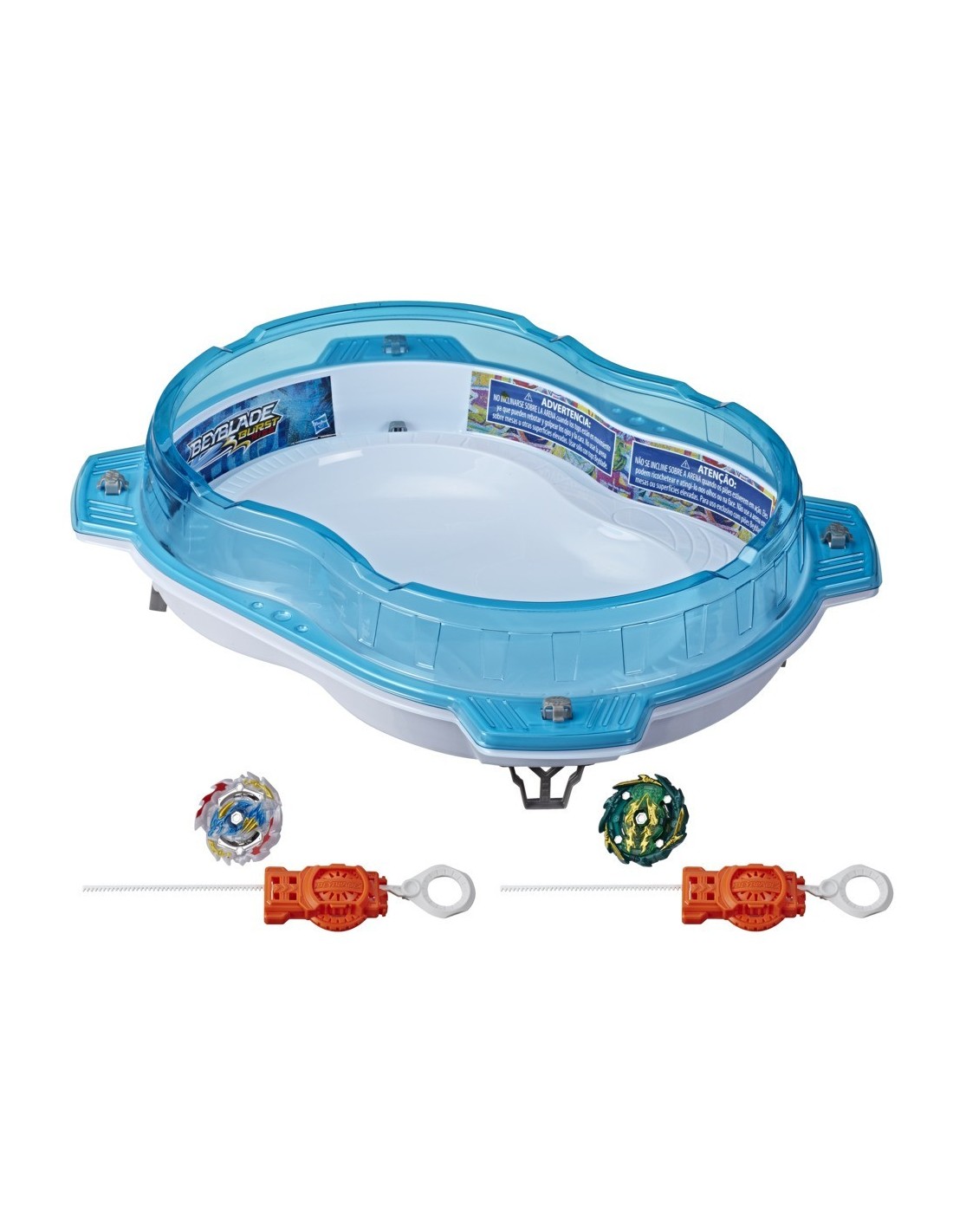 ¡Ataca desde arriba para alcanzar la victoria con la tecnología Beyblade Burst Rise Hypersphere! La arena Beystadium Hypersphere Caída vertical cuenta con 3 secciones especialmente diseñadas para librar increíbles batallas Beyblade Burst. Sube por la pared vertical de la arena Beystadium para alcanzar el borde, luego desplázate y cae en el ring de batalla para colisiones cuerpo a cuerpo. ¡Ataca desde arriba para librar emocionantes batallas de gran intensidad! Incluye todo lo necesario para la batalla: arena Beystadium Beyblade Burst Hypersphere Caída vertical, 2 lanzadores Beyblade Burst de rotación derecha/izquierda y 2 tops de combate Hypersphere con chips GT. Escanea el código en las capas de energía de los tops Beyblade Burst Slingshock y en la arena Beystadium Caída vertical para activarlos en la app Beyblade Burst. Let it rip! Los juguetes Beyblade Burst son para niños y niñas de 8 años en adelante. Este juego es un regalo ideal para los fans de la serie animada y para los niños que quieren desarrollar sus habilidades en el camino hacia el dominio del poder Beyblade. Hasbro y todos los términos relacionados son marcas registradas de Hasbro.
