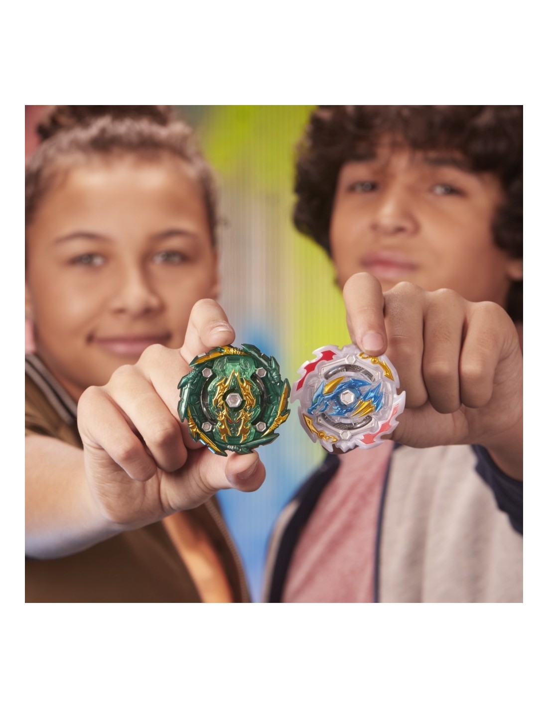 BEYBLADETODO LO NECESARIO PARA LA BATALLA: Viene con arena Beystadium Caída vertical, 2 lanzadores de rotación derecha/izquierda y tops de combate de rotación derecha Dragon D5 (tipo ataque) y Bushin Ashindra A5 (tipo defensa)