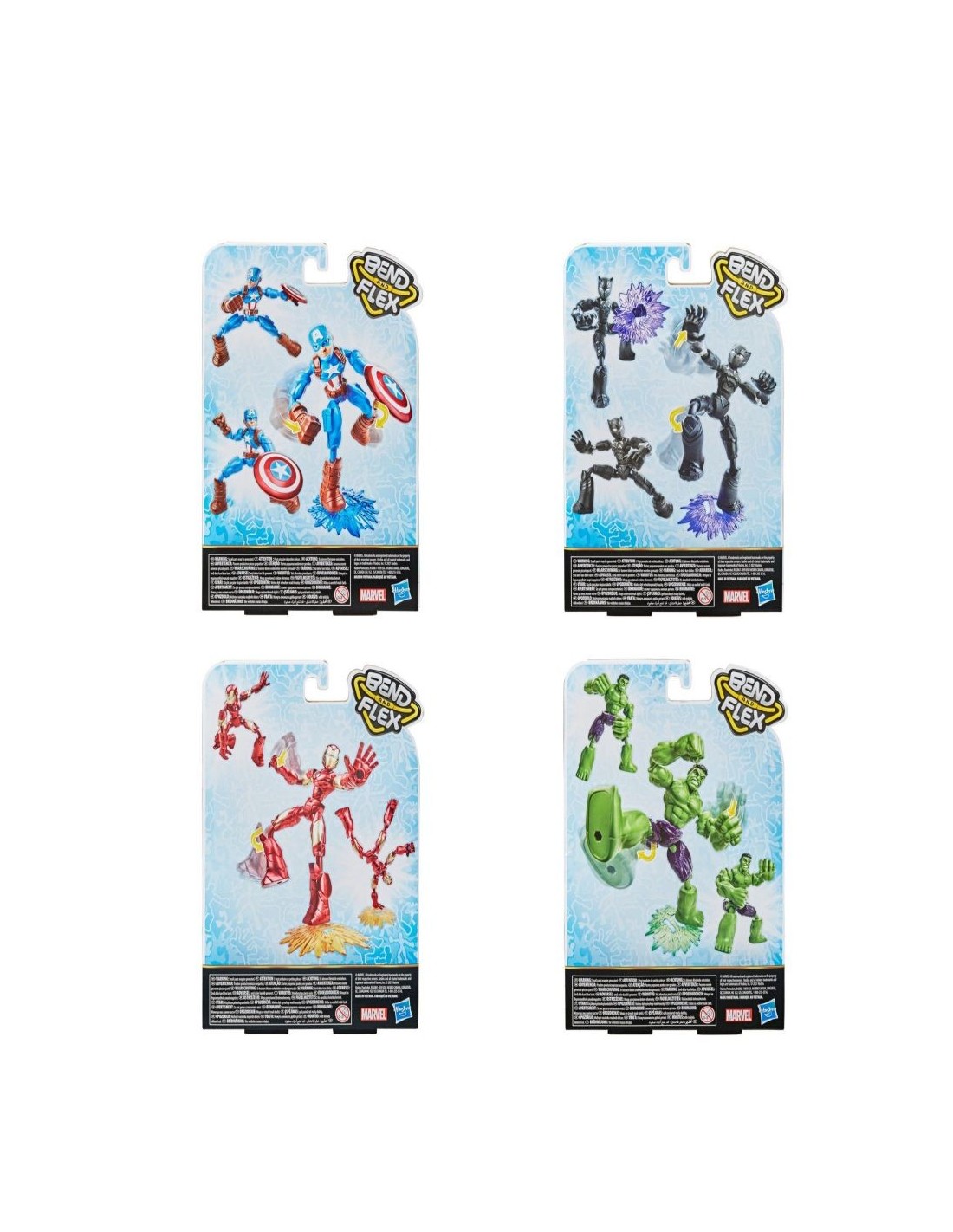 ¡Tuerce! ¡Gira! ¡Flexiona tu poder! Ahora puedes doblar, flexionar y jugar con tus superhéroes favoritos de Marvel con estas super ágiles Figura de Accións Avengers Bend and Flex. Colecciona estos personajes inspirados en el Universo Marvel (se venden por separado). Estas Figura de Accións estilizadas de superhéroes tienen brazos y piernas flexibles que se pueden doblar y mantener en su lugar para lograr una pose perfecta. Despliega estas Figura de Accións Bend and Flex en acciones dramáticas y poses heroicas o juguetonas. Los accesorios incluidos te ayudan a realzar las poses y reproducir tus escenas favoritas de Marvel. Crea batallas frenéticas con el héroe adoptando y flexionando movimientos fantásticos. Después de todo, un buen héroe (o villano) siempre es flexible. Copyright 2021 Marvel. Hasbro y todos los términos relacionados son marcas de comercio de Hasbro.