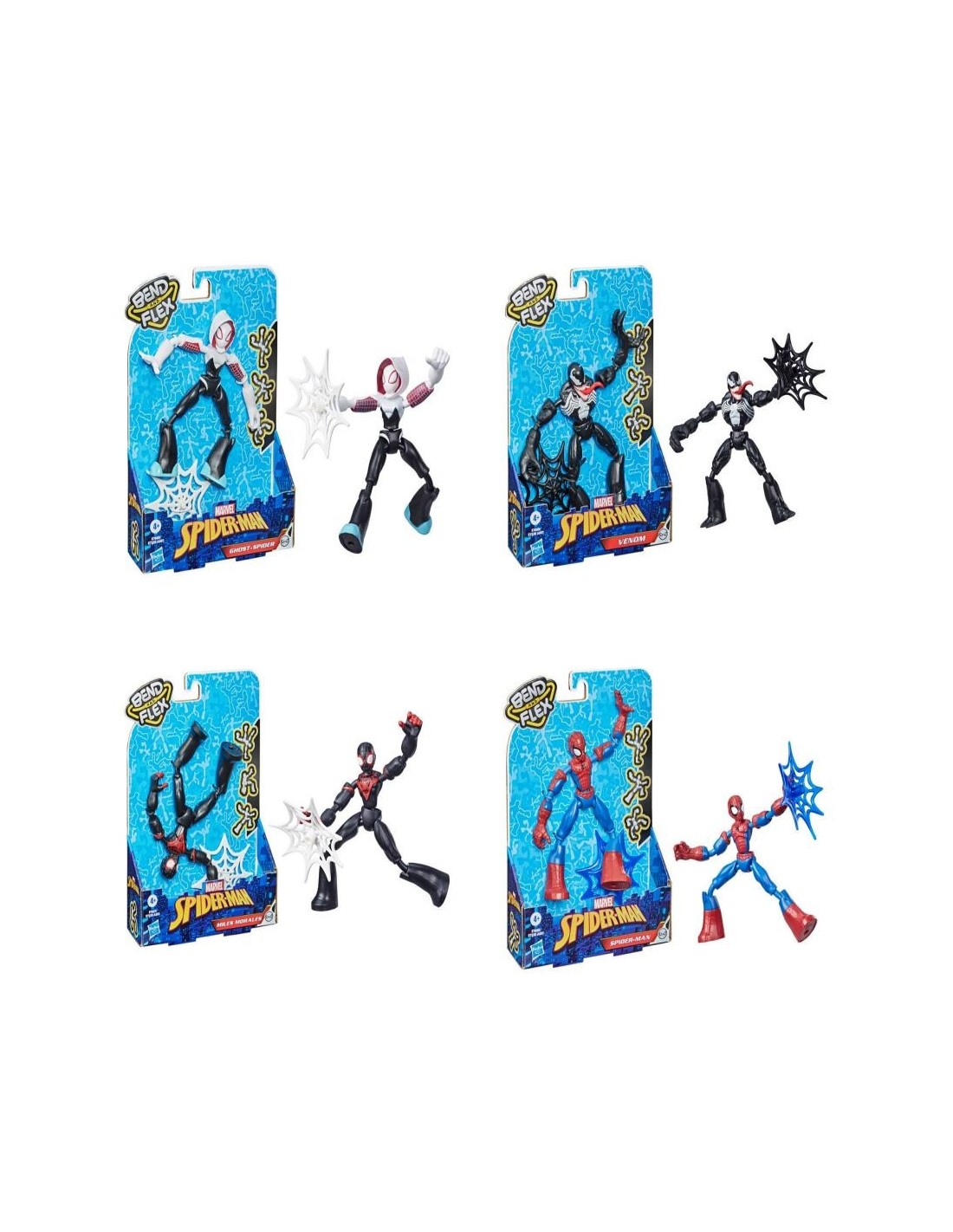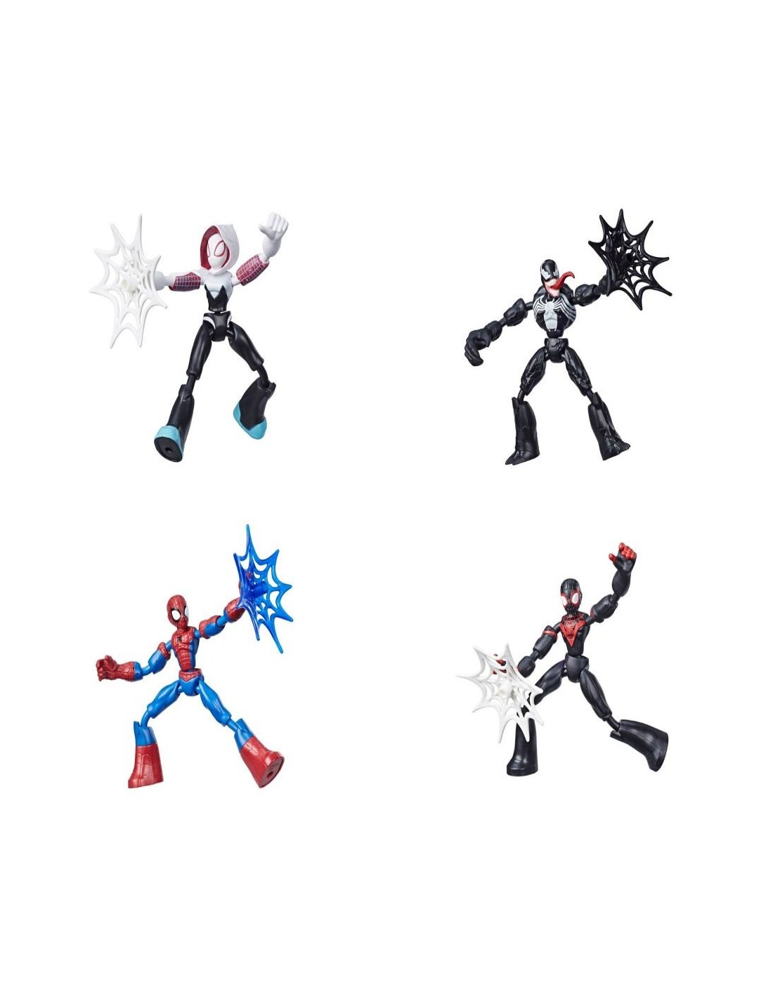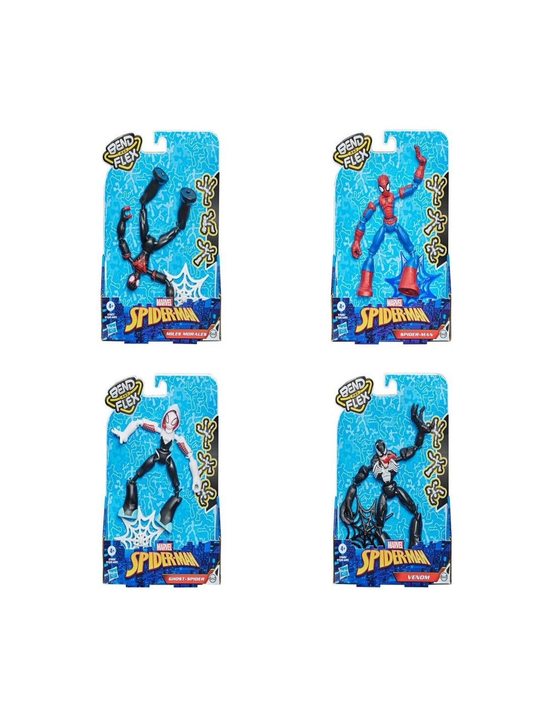 ¡Tuerce! ¡Gira! ¡Flexiona tu poder! Ahora puedes doblar, flexionar y jugar con tus superhéroes favoritos de Marvel con estas super ágiles Figura de Accións Spider-Man Bend and Flex. Colecciona estos personajes inspirados en el Universo Marvel (se venden por separado). Estas Figura de Accións estilizadas de superhéroes tienen brazos y piernas flexibles que se pueden doblar y mantener en su lugar para lograr una pose perfecta. Despliega estas Figura de Accións Bend and Flex en acciones dramáticas y poses heroicas o juguetonas. El accesorio incluido te ayuda a realzar las poses y reproducir tus escenas favoritas de Marvel. Crea batallas frenéticas con el héroe adoptando y flexionando movimientos fantásticos. Después de todo, un buen héroe (o villano) siempre es flexible. Copyright 2019 Marvel. Hasbro y todos los términos relacionados son marcas registradas de Hasbro.