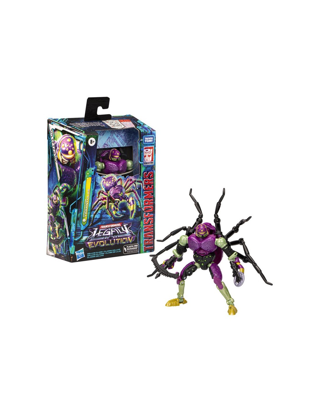 ¡La batalla evoluciona con la figura Transformers Deluxe Class de Predacon Tarantulas de la línea Legacy Evolution! Aquellos que entran a la guarida de Tarantulas terminan enfrentándose a sus colmillos. O peor todavía, se convierten en objeto de sus malévolos experimentos científicos. ¡Las figuras Transformers evolucionan hacia una nueva fase con la tecnología Evo-Fusion! Celebra los 40 años de historia de Transformers con las figuras de acción Transformers Legacy para niños y niñas. Transformers Legacy abre el portal hacia un nuevo universo para juntar todas las generaciones de Transformers como nunca las has visto antes. Combina y colecciona distintos personajes para crear tu línea ideal de figuras Legacy.