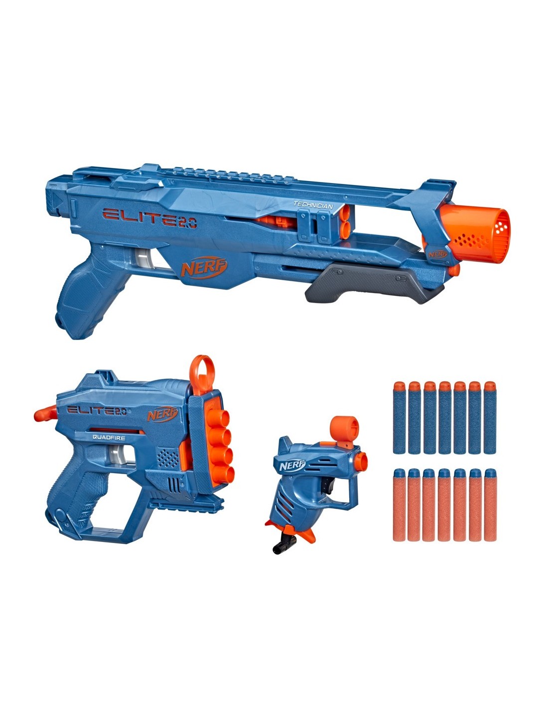 Este set de Nerf Elite 2.0 incluye 3 lanzadores para que te diviertas a lo grande. El Set Nerf Elite 2.0 Loadout incluye el lanzador Technician DS-2 que tiene capacidad para 2 dardos, lanza 1 dardo a la vez por bombeo y tiene un riel táctico y un conector de culata para personalizarlo (culata no incluida). El lanzador Quadfire QS-4 tiene una capacidad de 4 dardos para lanzar 4 dardos seguidos, una palanca de recarga por retroceso y una mira de puntería. El lanzador Ace SD-1 lanza 1 dardo por bombeo y tiene una mira que también sirve para almacenar 1 dardo. Este potente set incluye 14 dardos de espuma oficiales Nerf Elite, los suficientes para cargar completamente los 3 lanzadores y dejar dardos de reserva para recargar y seguir disparando. ¡Crea tu colección Nerf con el Set Loadout! Es un gran regalo que te permite entrar en batallas Nerf nada más sacarlo de la caja. Se recomiendan el uso de gafas (no incluidas). No requiere pilas.
