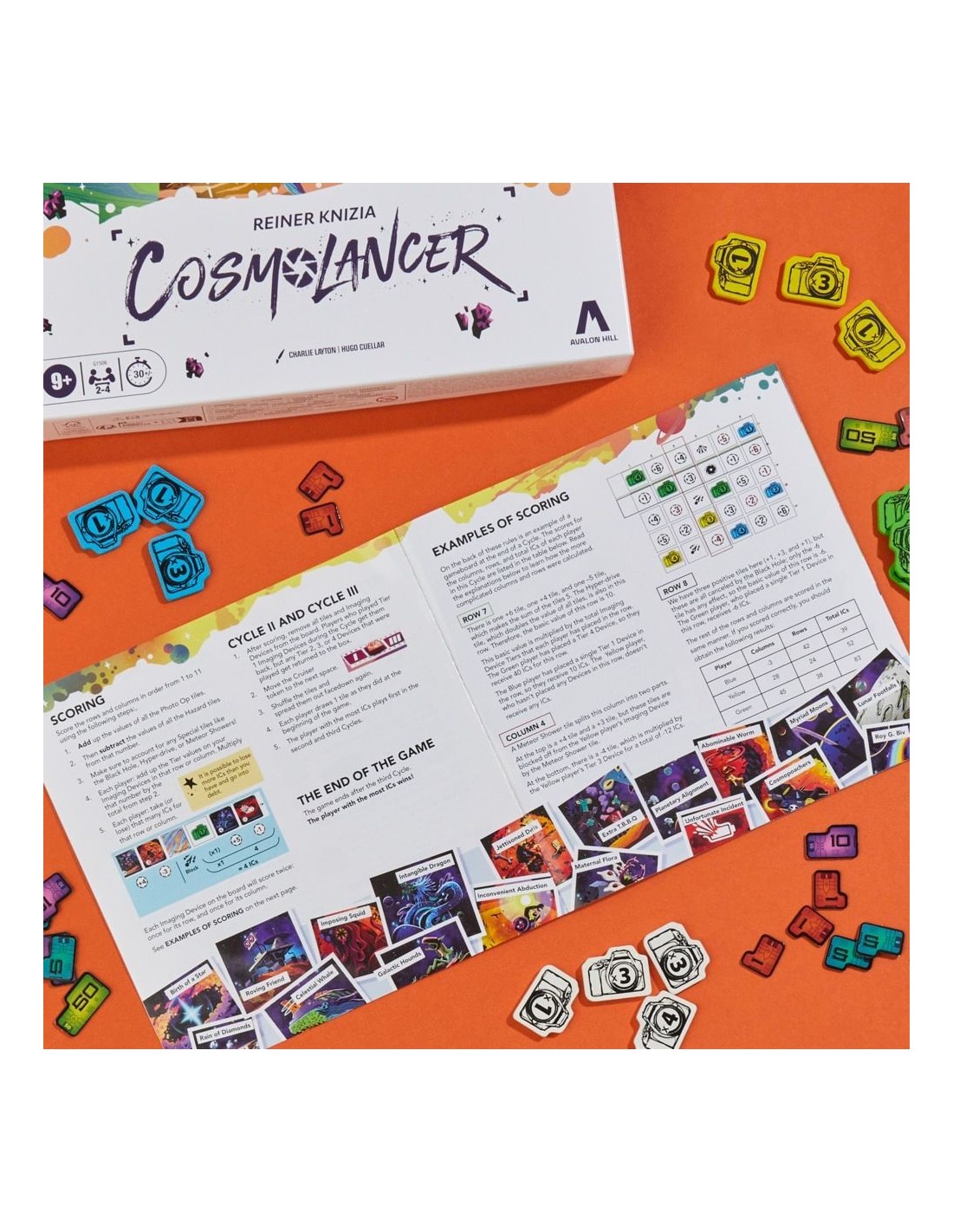 REIMAGINANDO UN JUEGO DE ESTRATEGIA FAVORITO: ¡El juego Cosmolancer es una versión galáctica del juego Kingdoms del legendario diseñador Reiner Knizia! Juega como un Cosmolancer (fotógrafo espacial) y compite para ser el mejor