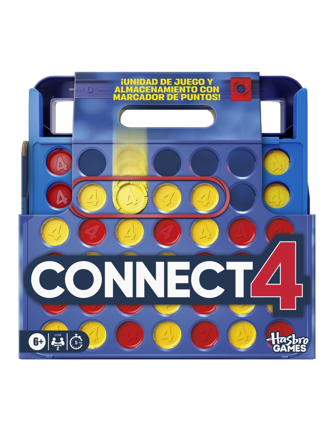 ¡Coloca 4 en línea y gana con el juego Conecta 4! Esta edición del popular juego para 2 jugadores combina el juego clásico con nuevas características, como el estuche todo en uno, la bandeja de almacenamiento y el marcador de puntos. Para jugar, cada jugador suelta sus discos en la parrilla e intenta colocar 4 discos de su color en línea. Piensa estratégicamente y bloquea a tu oponente para colocar el disco del triunfo. El primero en ganar 4 rondas será el campeón, y ahora los jugadores podrán hacer el seguimiento de las victorias con los marcadores de puntos integrados. Esta edición portátil está diseñada para guardarla con facilidad y para llevarla a todas partes. ¡Los discos se guardan dentro de la unidad de juego con facilidad, la cual se convierte en un estuche con asa! El juego Conecta 4 añade mucha diversión a las fiestas de cumpleaños de los niños, reuniones de amigos y familiares y en muchas otras ocasiones. Los juegos familiares y los juegos de mesa clásicos también son perfectos como regalos para los niños a partir de 6 años. CONECTA 4 y HASBRO GAMES y todas las marcas y logotipos relacionados son marcas registradas de Hasbro, Inc.