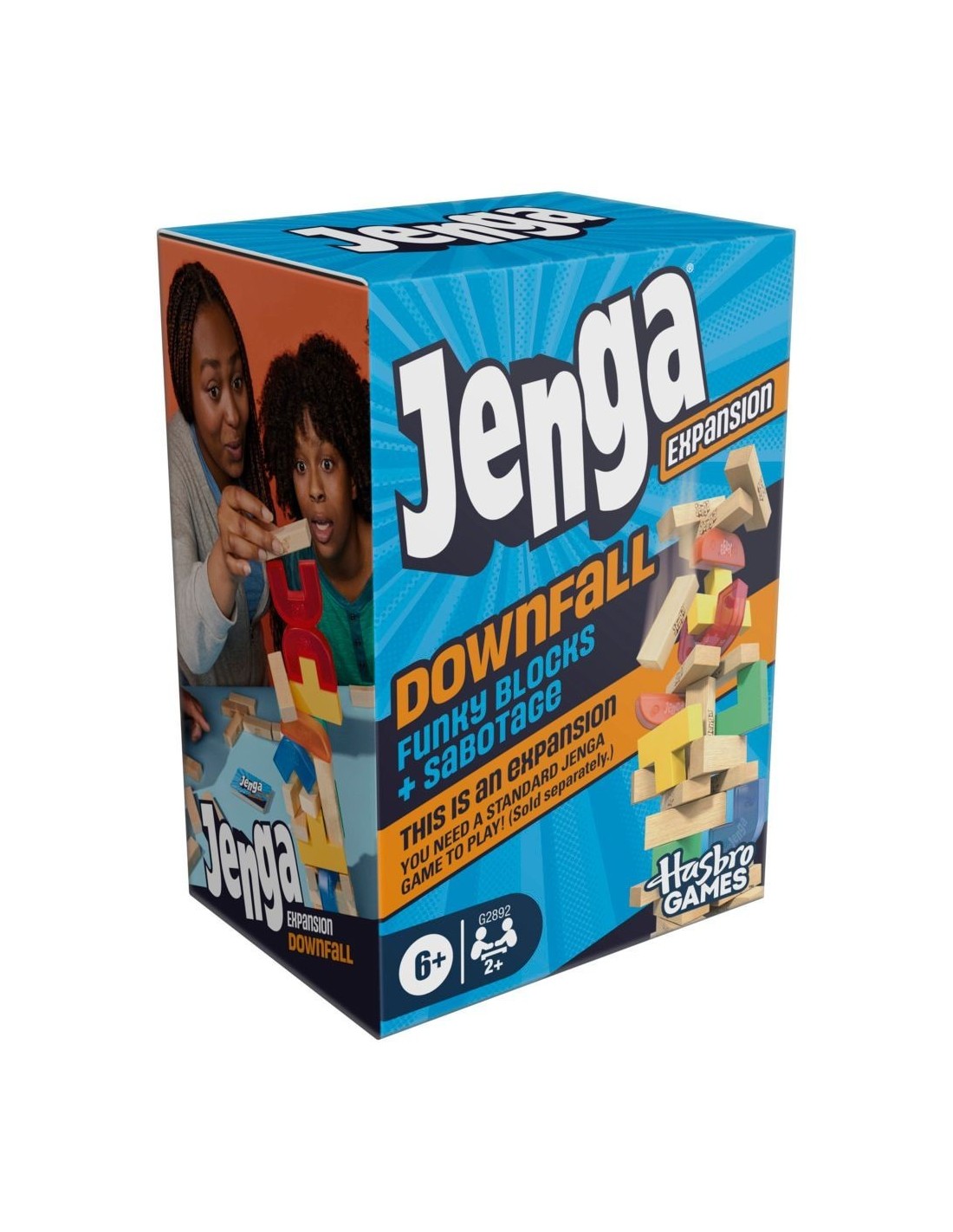 ¡Este pack de expansión Jenga: Colapso incluye 10 bloques irregulares y 30 cartas de Colapso que deberás añadir a tu clásico juego Jenga para una nueva y emocionante manera de jugar! Los jugadores construyen una épica torre mientras intentan sabotear a sus oponentes para sacarles ventaja. Por turnos, cogen cartas que les dicen qué bloque(s) deben añadir a la torre. Si algún jugador hace caer algún bloque, deberá añadirlo a su reserva. Algunas cartas les permiten intercambiar sus reserva de bloques por las de otros jugadores, otras los obligan a apilar más bloques en su turno, y así por el estilo. ¡El jugador con menos bloques al final de la partida será el ganador! Esta extensión del juego original de bloques de madera es uno de los mejores juegos familiares de fiestas para grupos y es un divertido juego para 1 o 2 jugadores. Con un embalaje compacto y fácil preparación, también es un excelente juego de viajes. Los juegos de mesa para fiestas y para noches de juegos en familia también son excelentes regalos para adolescentes, adultos y niños a partir de 6 años. (Esta es una expansión. Requiere del juego Jenga principal. Se vende por separado). JENGA es una marca registrada de Pokonobe Associates. Se usa bajo licencia de Pokonobe Associates. Todos los derechos reservados. HASBRO GAMES y todas las marcas registradas y logotipos son marcas registradas de Hasbro, Inc.