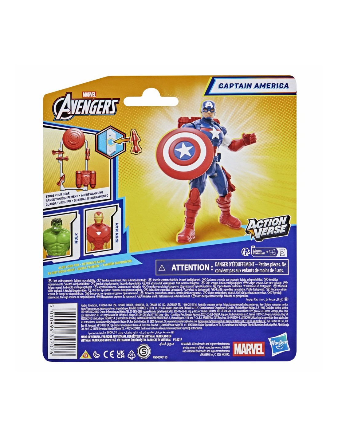 ¡Los más pequeños podrán imaginar la acción y la aventura patriótica con esta figura de Marvel Avengers Capitán América de la línea ActionVerse de Hasbro! Da a la hora de juego el poder heroico con esta figura delCapitán América, que cuenta con 9 puntos de articulación para jugar con ella y para colocarla en poses. Cada figura ActionVerse de superhéroe de 11,4 cm viene con múltiples accesorios removibles inspirados en el personaje, así como un estante reutilizable de almacenamiento. Los niños y las niñas a partir de 4 años adorarán imaginar sus propias aventuras con esta figura del Capitán América que es un excelente regalo de cumpleaños, fiestas y otras ocasiones. Busca otros juguetes infantiles Avengers ActionVerse para coleccionar, incluyendo figuras, sets de juego, vehículos y artículos para juego de rol. (Se venden por separado. Sujeto a disponibilidad). Copyright MARVEL. Todas las marcas registradas y de comercio son propiedad de sus dueños respectivos. HASBRO y todas las marcas y logotipos relacionados son marcas registradas de Hasbro, Inc.