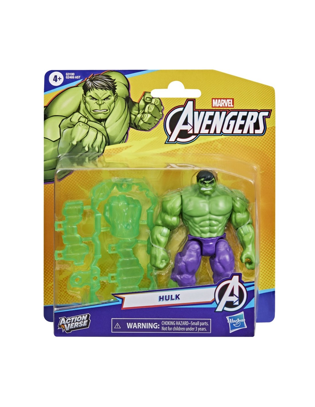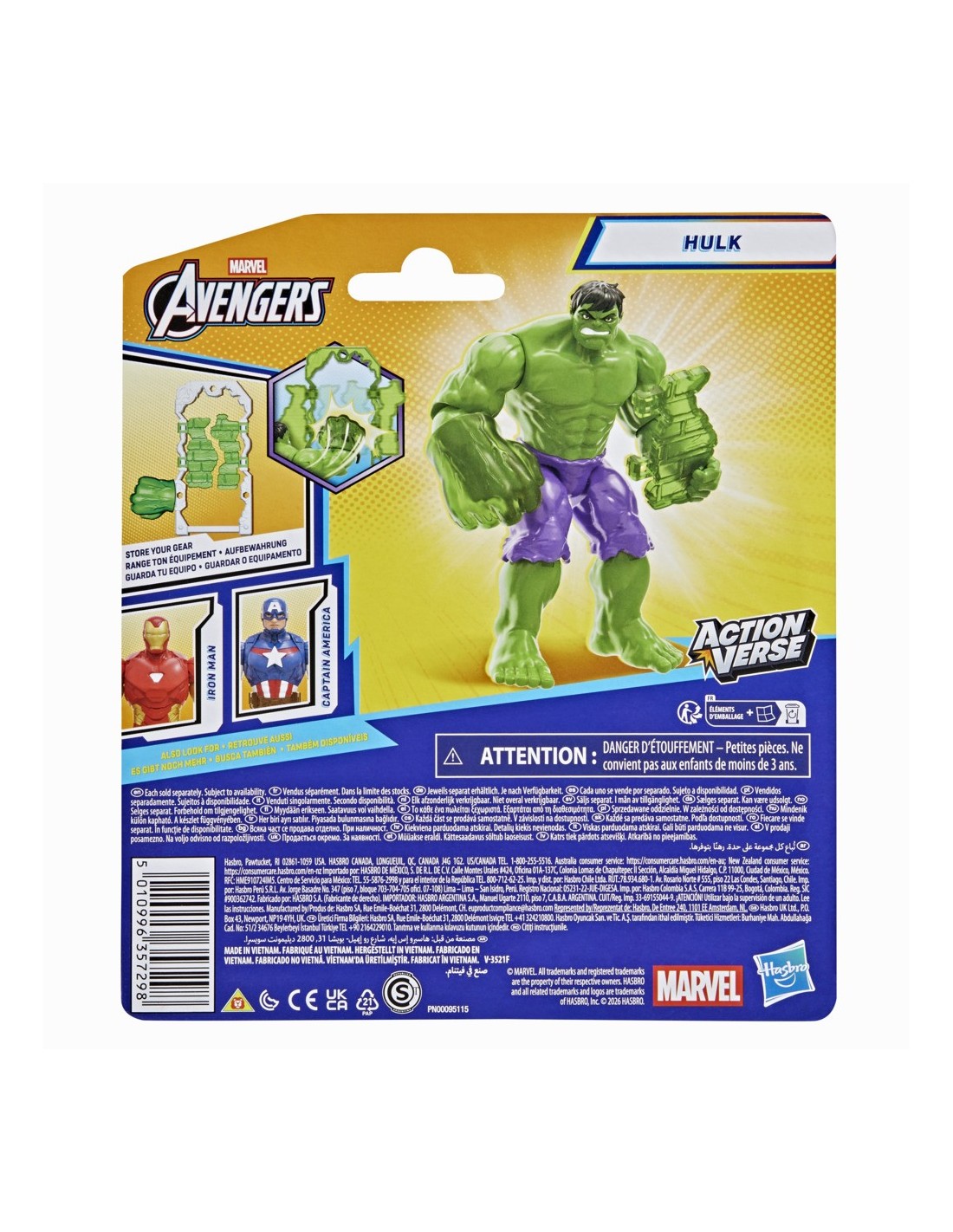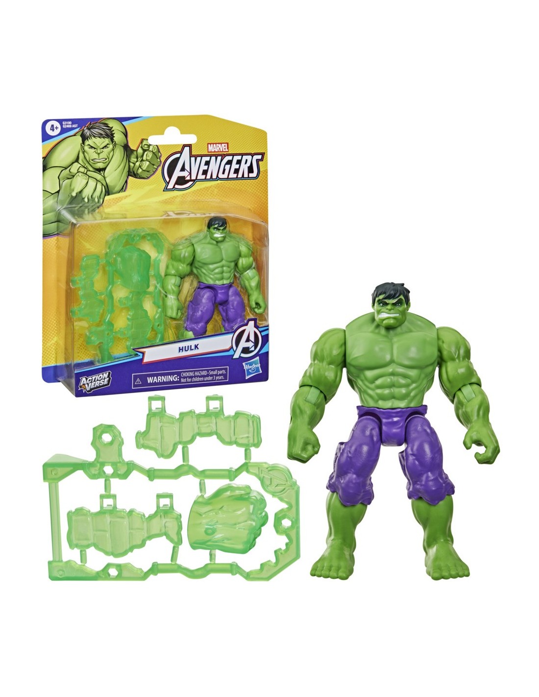 ¡HULK APLASTA! ¡Los más pequeños podrán imaginar acción y aventuras de furia verde gamma con esta figura de Marvel Avengers Hulk de la línea ActionVerse de Hasbro! Da a la hora de juego el poder gamma con esta figura de Hulk, que cuenta con 9 puntos de articulación para jugar y para colocarla en poses Cada figura ActionVerse de superhéroe de 11,4 cm viene con múltiples accesorios removibles inspirados en el personaje, así como un estante reutilizable de almacenamiento. Los niños y las niñas a partir de 4 años adorarán imaginar sus propias aventuras con esta figura de Hulk que es un excelente regalo de cumpleaños, fiestas y otras ocasiones. Busca otros juguetes infantiles Avengers ActionVerse para coleccionar, incluyendo figuras, sets de juego, vehículos y artículos para juego de rol. (Se venden por separado. Sujeto a disponibilidad). Copyright MARVEL. Todas las marcas registradas y de comercio son propiedad de sus dueños respectivos. HASBRO y todas las marcas y logotipos relacionados son marcas registradas de Hasbro, Inc.