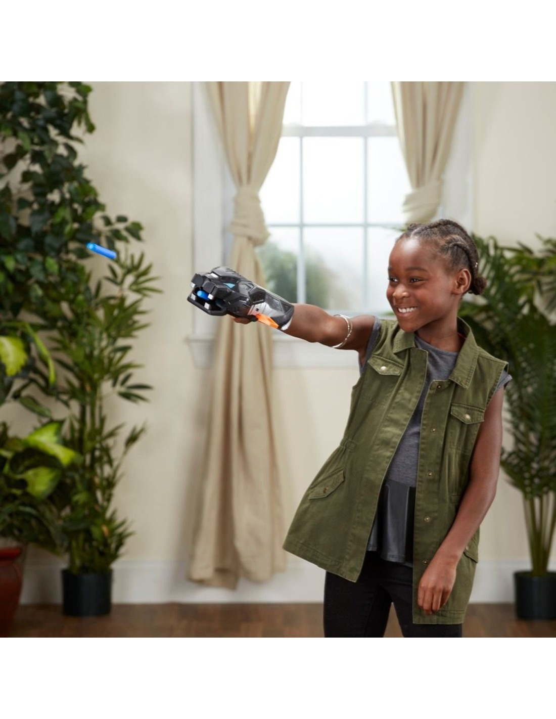 Cuando los protectores de Wakanda necesitan equiparse con la tecnología más avanzada, Shuri crea diseños reforzados con vibranio para preparar a sus compañeros para la batalla. El vibranio es uno de los recursos más poderosos de la Tierra y, combinado con los conocimientos tecnológicos de Shuri, ¡es todavía más poderoso! ¡Los niños y las niñas a partir de 5 años pueden imaginar que defienden Wakanda como Shuri con el Guantelete de combate de Black Panther hecho de vibranio y con tecnología Nerf! Copyright 2022 Marvel. Hasbro y todos los términos relacionados son marcas registradas de Hasbro.