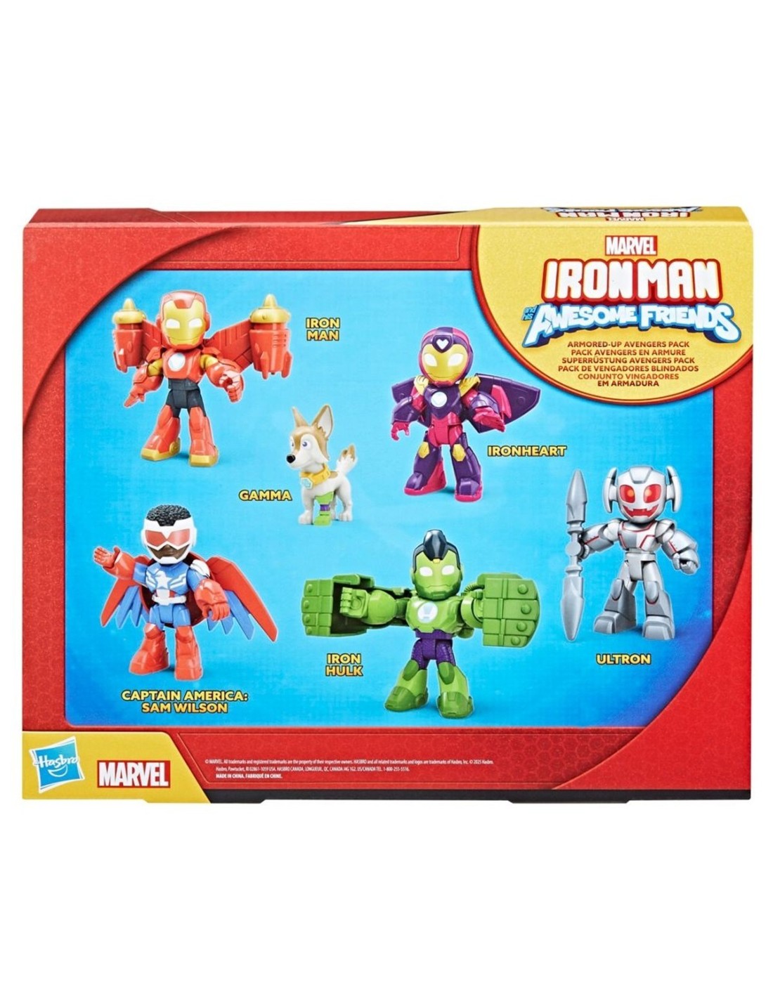 Únete al equipo Iron Man en su más reciente aventura con este set de 6 juguetes Marvel. Este set de 6 figuras a escala de 7,6 cm de juguetes Iron Man para niños y niñas incluye 5 figuras de superhéroe y 1 figura de villano que cuentan con diseño y decorado inspirados en el entretenimiento. ¡Imagina al equipo Iron Man activando sus armaduras para combatir contra el villano Ultron con los accesorios removibles inspirados en los personajes! ¡Estimula el juego imaginativo en los niños a partir de 3 años con este set de juguetes Marvel! ¡Busca otras figuras Iron Man and His Awesome Friends para armar una colección de superhéroes blindados o para regalar a los niños en edad preescolar! (Se venden por separado. Sujeto a disponibilidad). Copyright MARVEL. Todas las marcas registradas y de comercio son propiedad de sus dueños respectivos. HASBRO y todas las marcas y logotipos relacionados son marcas registradas de Hasbro, Inc.