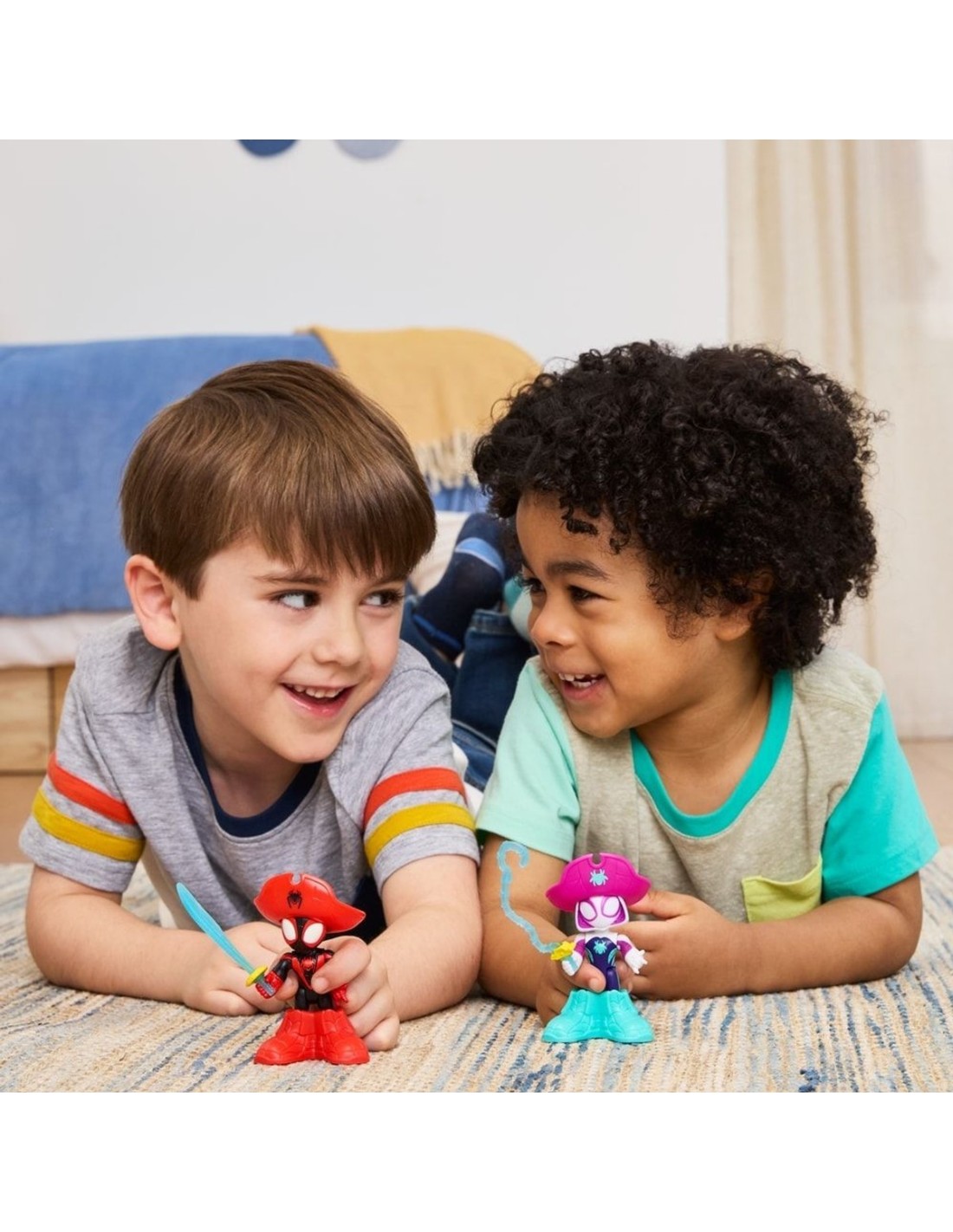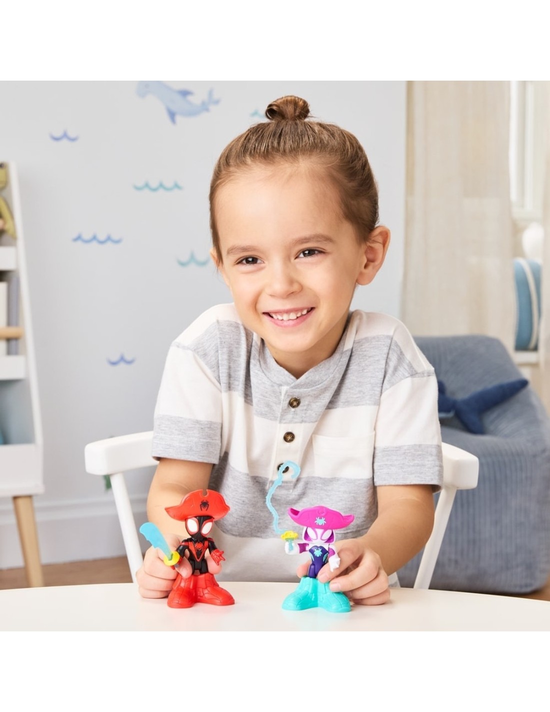 ¡Únete al Equipo Spidey en sus más recientes aventuras acuáticas con este set de figuras Marvel coleccionable de Pirata Miles “Spin” Morales y Pirata Ghost-Spider! Estos juguetes Marvel Spider-Man de 7,6 cm cuentan con diseño y detalles inspirados en la serie, así como accesorios removibles que puedes fijar a las figuras. ¡Estimula el juego imaginativo y de aventuras en los niños y niñas a partir de 3 años con estos packs dobles de figuras de acción Marvel! ¡Busca más figuras Spidey and his Amazing Friends Water-Webs, como Water-Webs Spidey e Hydro-Man, para armar una colección de superhéroes arácnidos o para ofrecerlas como regalos Marvel a niños y niñas en edad preescolar! (Se venden por separado. Sujeto a disponibilidad).