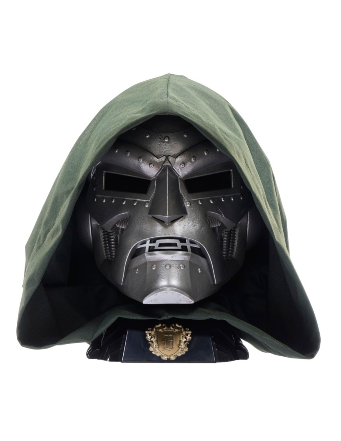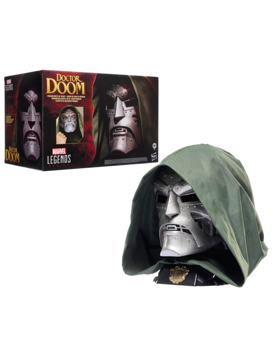 MARVEL¡Marvel Legends de Hasbro se enorgullece en presentar esta reproducción a escala 1:1 del clásico casco del Doctor Muerte! Casco para juego de rol con diseño y decorado premium inspirado en la distintiva apariencia del personaje en los cómics de Marvel. Este set para juego de rol de Marvel viene con una capucha de tela verde inspirada en la distintiva capa y capucha del Doctor Muerte. Incluye una base que es perfecta para exhibir el casco en las colecciones de los fans; el casco también es ideal para completar un disfraz del Doctor Muerte para Halloween o para cosplay. ¡Imagina la confrontación de la brillante mente de Victor Von Doom contra Reed Richards y los Los 4 Fantásticos! Haz que distintas escenas inspiradas en los cómics cobren vida con las figuras de acción, los equipos para juego de rol y los artículos de colección de Marvel Legends. (Cada uno se vende por separado. Sujeto a disponibilidad).