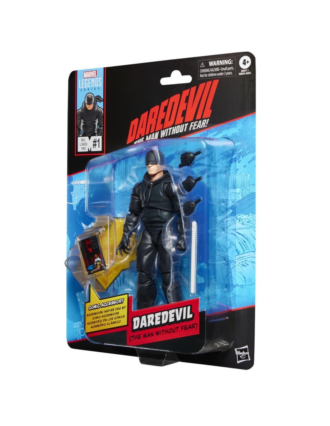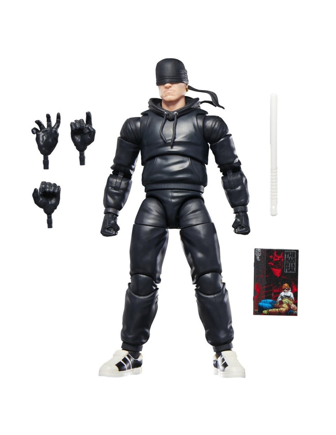 ¡Trae la emoción y la maravilla del Universo Marvel a tu colección con la figura de acción de Daredevil, de la línea Marvel Legends de Hasbro! Esta figura coleccionable a escala de 15 cm ha sido diseñada para verse igual al personaje de los cómics de Daredevil: The Man Without Fear de Marvel y cuenta con diseño premium con cabeza, manos y piernas articulables.Este set de figura de acción Marvel viene con 5 accesorios, incluyendo 3 manos alternativas, su emblemático bastón de combate y un accesorio de plástico con forma de cómic a escala de 15 cm con la portada de The Man Without Fear. Las figuras de acción Marvel de Hasbro a escala de 15 cm son ideales para exhibirlas en las colecciones de los fans. Reimagina escenas inspiradas en los cómics en tus estantes con las figuras de acción Marvel Legends y los artículos de colección de Marvel.