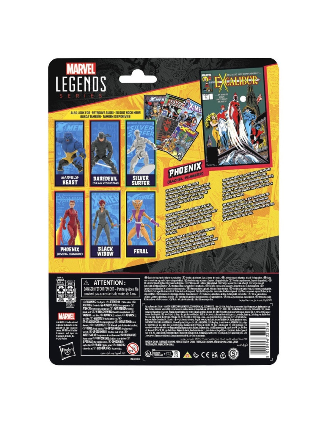 ¡Trae la emoción y la maravilla del Universo Marvel a tu colección con la figura de acción de Fénix (Rachel Summers), de la línea Marvel Legends de Hasbro! Esta figura coleccionable a escala de 15 cm ha sido diseñada para verse igual al personaje de los cómics de Excalibur #1 (1988) de Marvel y cuenta con diseño premium con cabeza, manos y piernas articulables.Este set de figura de acción Marvel viene con 8 accesorios, incluyendo 4 manos alternativas, cabeza alternativa, alas de la Fuerza Fénix y un accesorio de plástico con forma de cómic a escala de 15 cm con la portada de Excalibur #1 (1988). Las figuras de acción Marvel de Hasbro a escala de 15 cm son ideales para exhibirlas en las colecciones de los fans. Reimagina escenas inspiradas en los cómics en tus estantes con las figuras de acción Marvel Legends y los artículos de colección de Marvel.