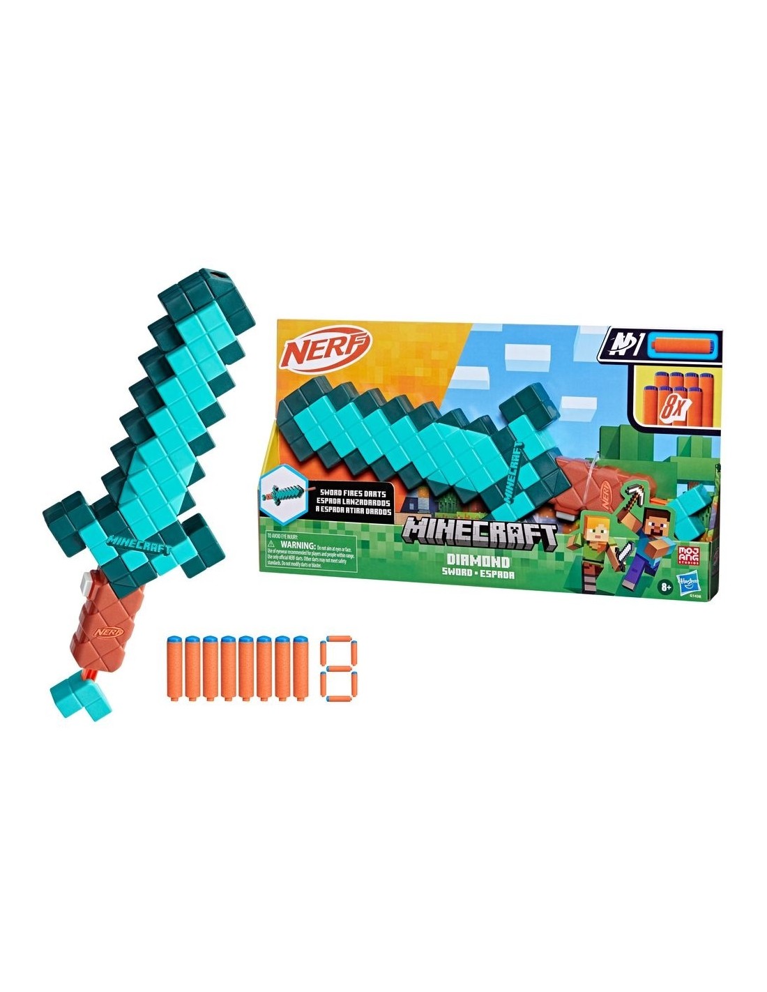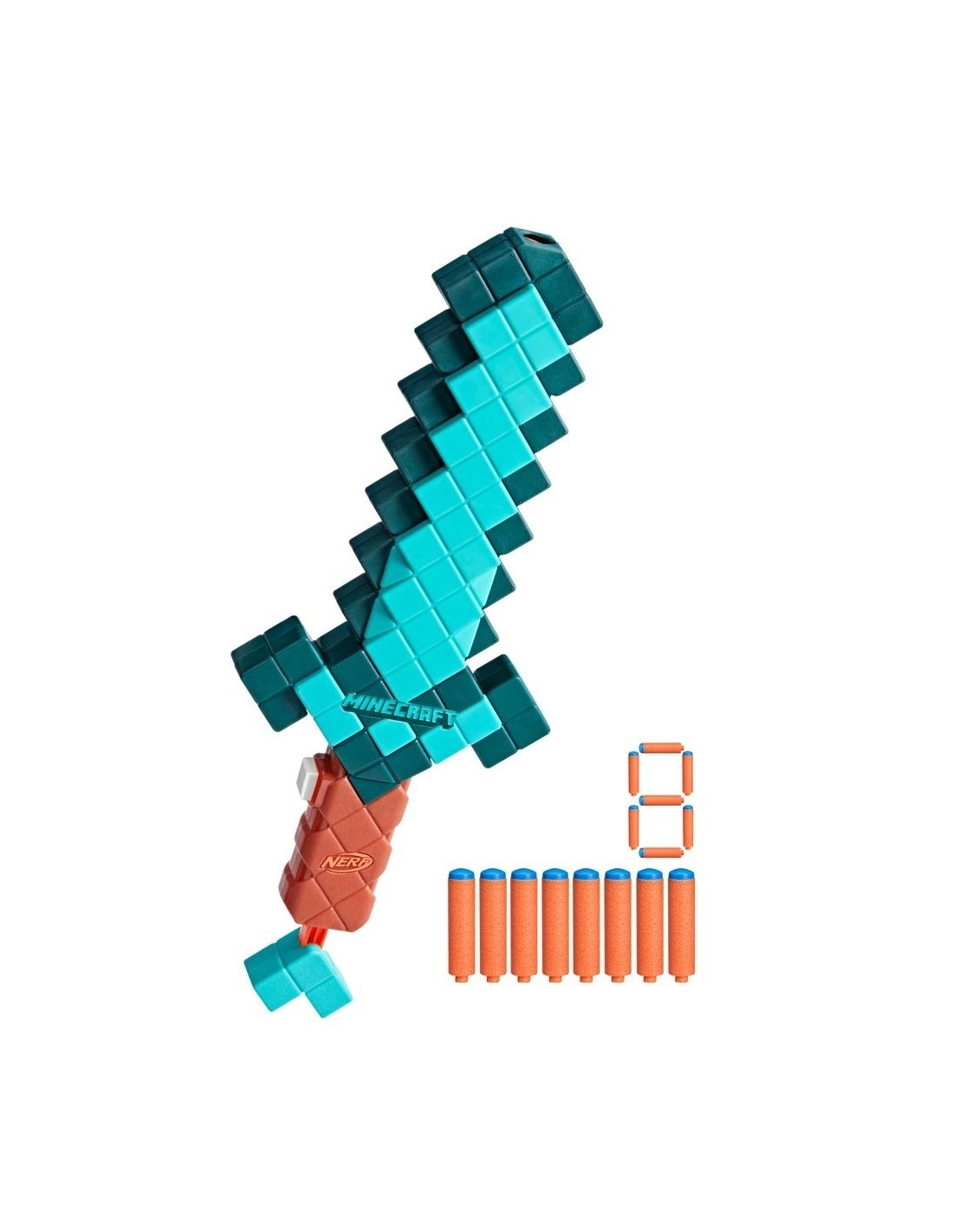 ESPADA DE NERF MINECRAFT: Esta Espada lanzadardos Diamond de Nerf Minecraft está inspirada en las espadas clásicas de los videojuegos Minecraft. Producto oficial