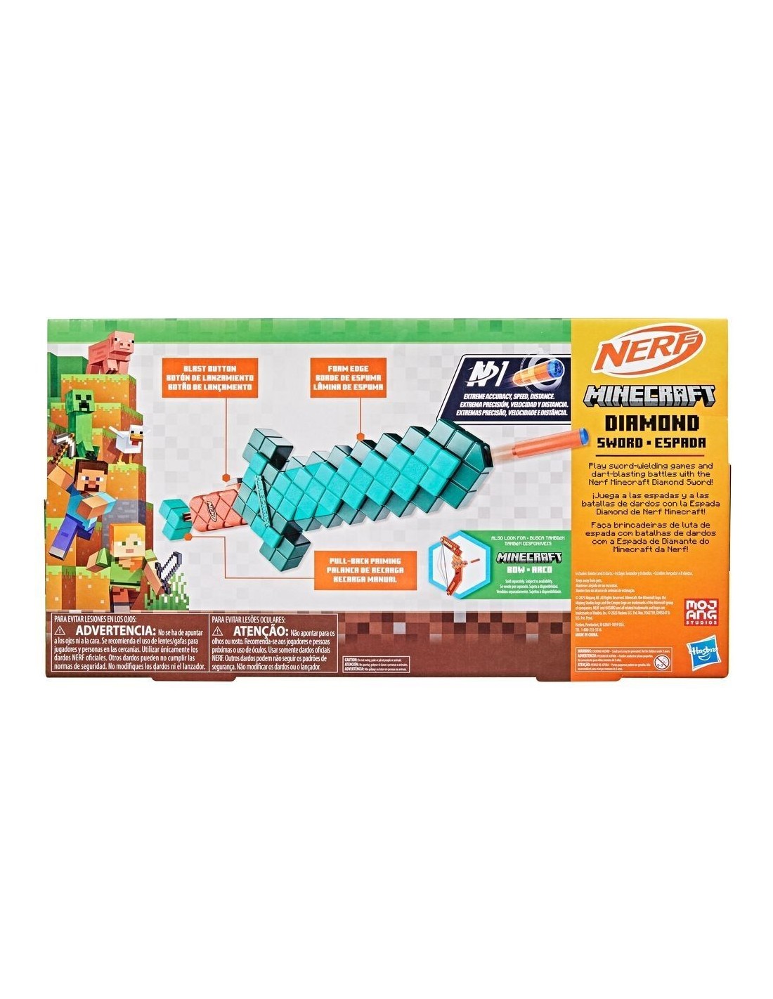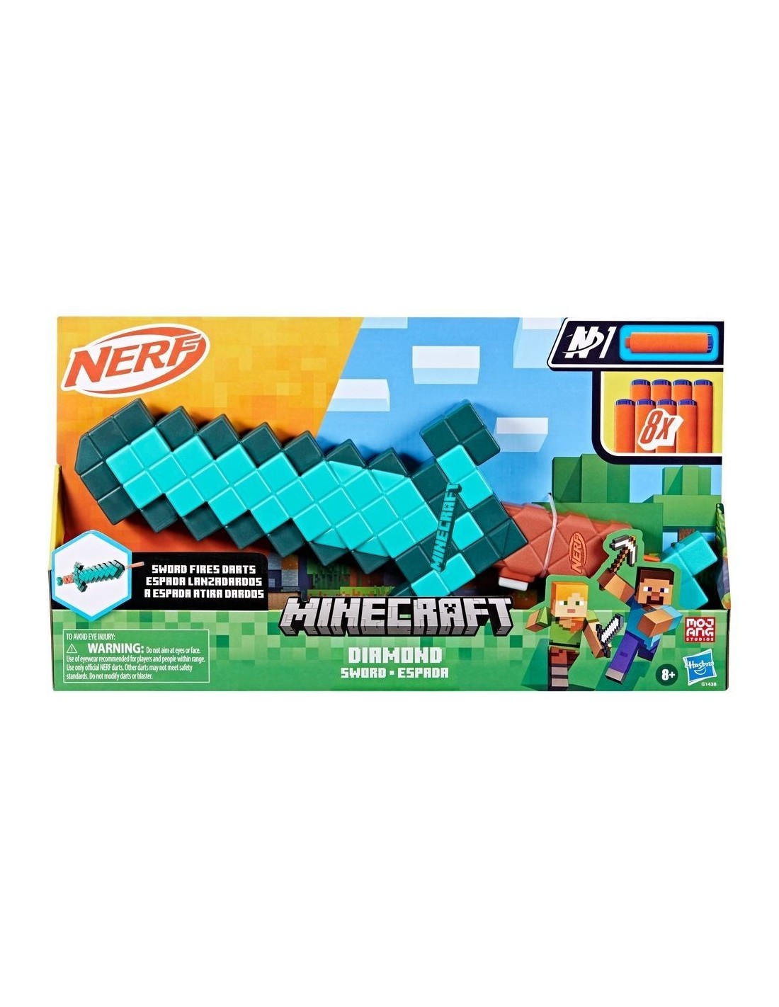 ¡Nerf y Minecraft se combinan para crear lanzadores distintivos para tus batallas Nerf! La Espada Nerf Minecraft Diamond está inspirada en las espadas del popular juego Minecraft. Los más pequeños podrán jugar con ella como espada o como lanzador. También podrán imaginarse en aventuras de espadachines o usarla como lanzador en batallas de dardos. La Espada de Nerf Minecraft incluye 8 dardos Nerf N1 oficiales que están diseñados para la precisión, velocidad y distancia extremas. Esta espada de lanzamiento único tiene bordes de espuma y una palanca de recarga. Presiona el botón para lanzar un dardo. La espada es una llamativa adición a las colecciones Minecraft y un increíble lanzador para tus batallas Nerf. Es ideal para el juego activo al aire libre y un gran accesorio para tus disfraces. Se recomienda el uso de lentes (no incluidos). Copyright 2025 Mojang AB. TM Microsoft Corporation. NERF y HASBRO y todas las marcas y logotipos relacionados son marcas registradas de Hasbro, Inc.