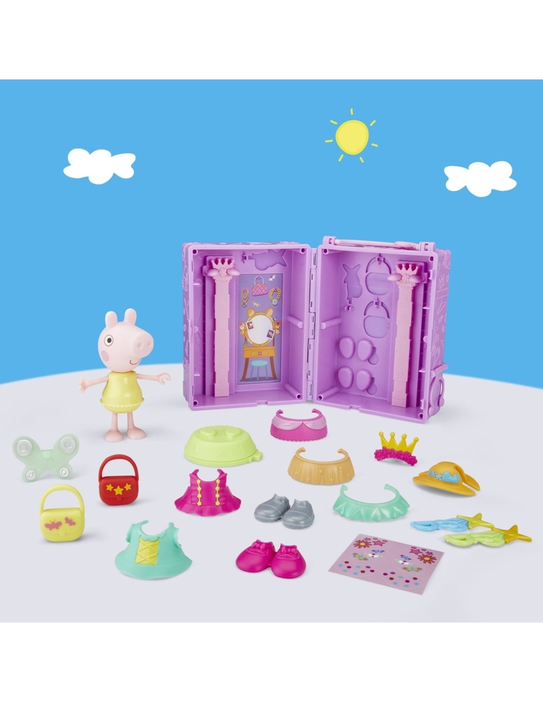 EL MEJOR DE LOS ARMARIOS DE PEPPA: ¡A los pequeñines que adoran las muñecas les encantará este adorable set de juego Peppa Pig! Incluye una figura de Peppa, 14 accesorios, base, pegatinas y un estuche de almacenamiento