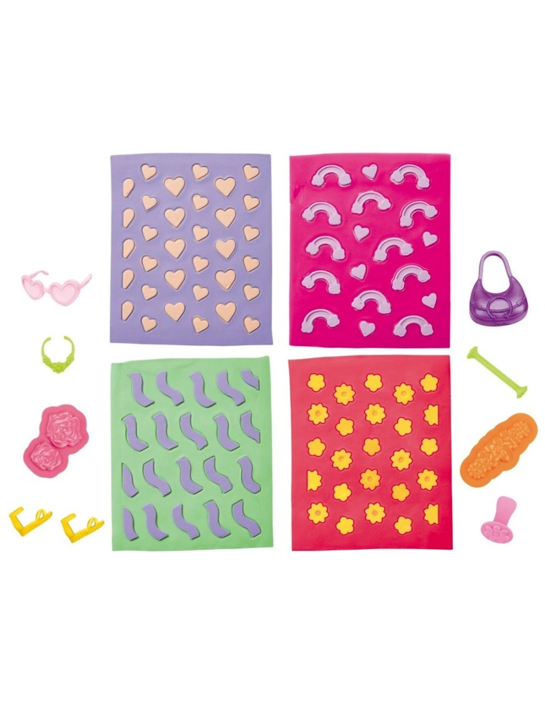 PLAY DOH¡Crea todavía más modas fabulosas con un pack de accesorios Flores y rosas! Este kit de manualidades es la perfecta adición a tus sets de muñeca Play-Doh Barbie (se venden por separado). Las 4 hojas de patrones Play-Doh cuentan con divertidos colores y diseños para ayudar a los más pequeños a crear ropas con masa Play-Doh para Barbie. Personaliza y añade accesorios a cada estilo, como sandalias, un bolso, lentes y flores Play-Doh. ¿Estás buscando regalos temáticos de Barbie para niños y niñas a partir de 5 años? ¡Este set Play-Doh te ofrece la mejor manera de estimular su imaginación y de fomentar las manualidades infantiles! Copyright Mattel. PLAY-DOH y HASBRO y todas las marcas registradas y logotipos son marcas registradas de Hasbro, Inc.
