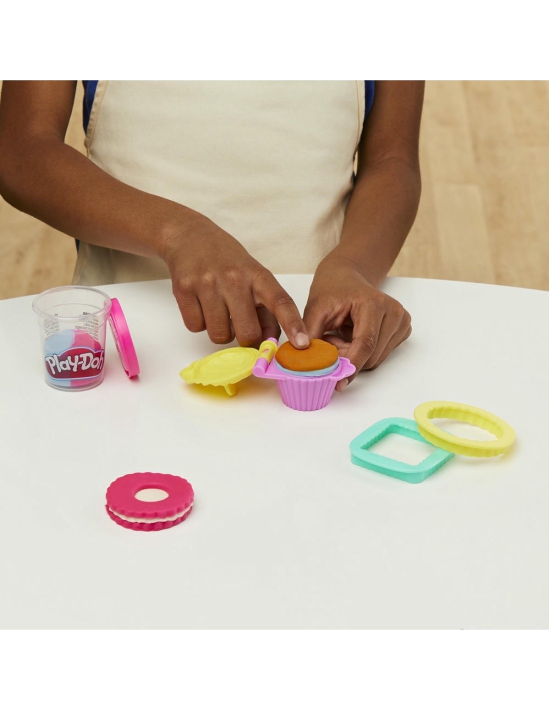 Los futuros chefs pueden crear postres imaginarios con este set Play-Doh Kitchen Creations. Los niños pueden crear pastelitos y dónuts Play-Doh con los moldes incluidos y decorarlos con coloridas decoraciones Play-Doh. Este juguete para fabricar postres viene con 2 latas de masa de dos colores Play-Doh para que los niños moldeen creaciones multicolor. Este set es una fantástica actividad para niños de 3 años en adelante.