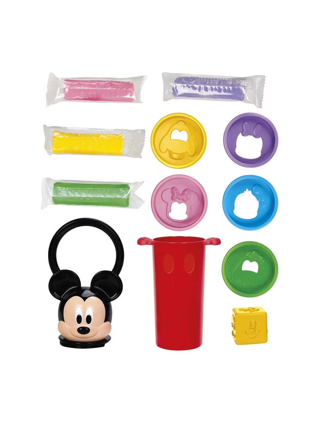 ¡Ven a divertirte con populares amigos de Disney Junior del set de juego Apila y diviértete de Play-Doh! No es simplemente un set de juego de Mickey Mouse. Este juguete te permitirá crear versiones Play-Doh de todo el equipo con diferentes sellos. Apila y guarda las piezas en el estuche temático de Mickey Mouse y lleva la diversión a todas partes. Incluye 4 barras individuales de 28 gramos de plastilina Play-Doh cada una de un color diferente. ¡Es un excelente regalo para los niños y las niñas que adoran los juguetes Disney o las manualidades infantiles! Copyright Disney. PLAY-DOH y HASBRO y todas las marcas registradas y logotipos son marcas registradas de Hasbro, Inc.