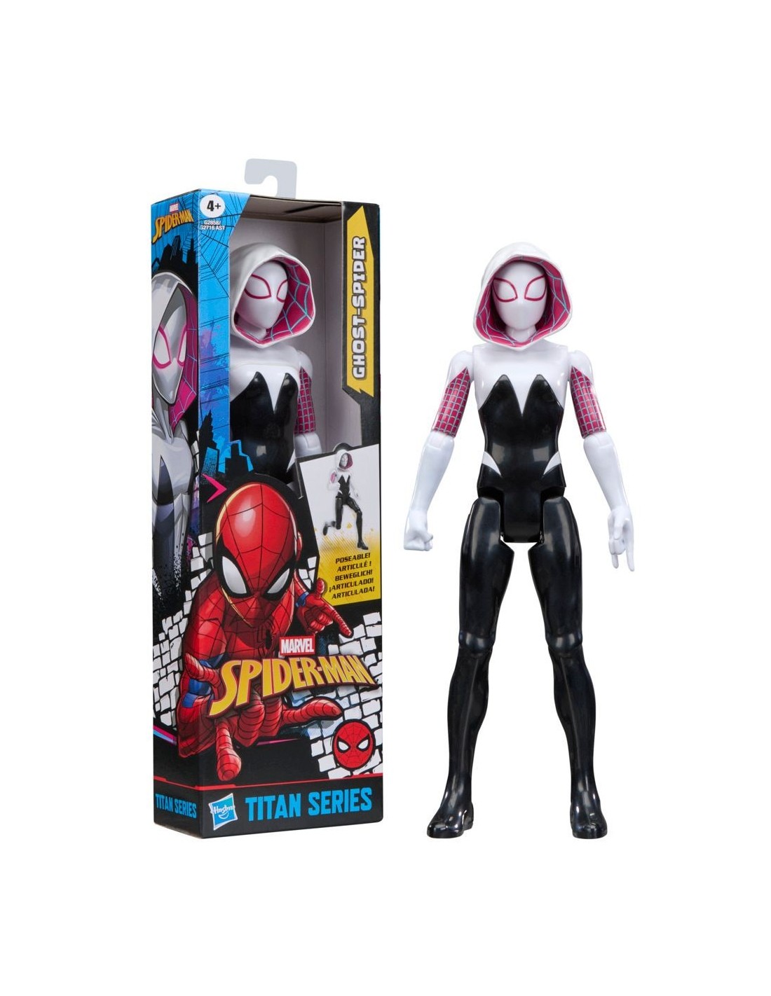 ¡Los más pequeños podrán imaginar grandes aventuras con las figuras de acción Marvel Spider-Man de la línea Titan Series de Hasbro para niños y niñas! Con su clásico diseño negro, blanco y rosa, además de 11 puntos de articulación para que lo coloques en diferentes poses al jugar, este juguete Spidey de Spider Fantasma mide 27,9 cm de alto en la escala de figuras de 30 cm. Los niños y las niñas a partir de 4 años podrán recrear momentos clásicos favoritos o imaginar nuevas historias emocionantes con esta figura de Marvel. ¡Busca otros juguetes Marvel Spider-Man, incluyendo figuras de acción, vehículos de juguete, sets de juego y artículos para juego de rol, y arma una colección u ofrécelos como regalos de cumpleaños, fiestas y otras ocasiones especiales! (Se venden por separado. Sujeto a disponibilidad). Copyright MARVEL. Todas las marcas registradas y de comercio son propiedad de sus dueños respectivos. HASBRO y todas las marcas y logotipos relacionados son marcas registradas de Hasbro, Inc.