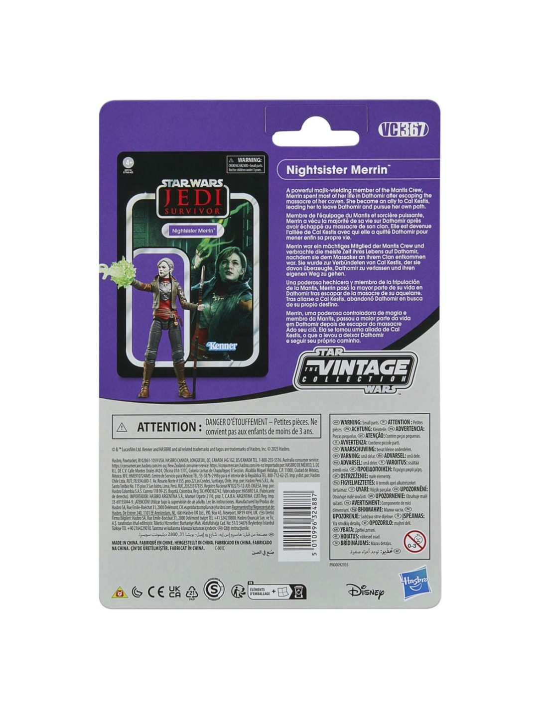 Celebra el legado de Star Wars con figuras de acción, sets de juego y vehículos premium de la colección Vintage de Star Wars. (Los productos adicionales se venden por separado. Sujeto a disponibilidad). Esta figura inspirada en Nightsister Merrin del videojuego Star Wars Jedi: Survivor mide 9,5 cm y es una increíble adición a toda colección. Inspiradas en la línea original, estas figuras coleccionables y sus empaques cuentan con detalles y diseños premium. Asimismo, la decoración alcanza el nivel de un objeto de colección que los fans conocen y aman. ¡Que la Fuerza te acompañe!