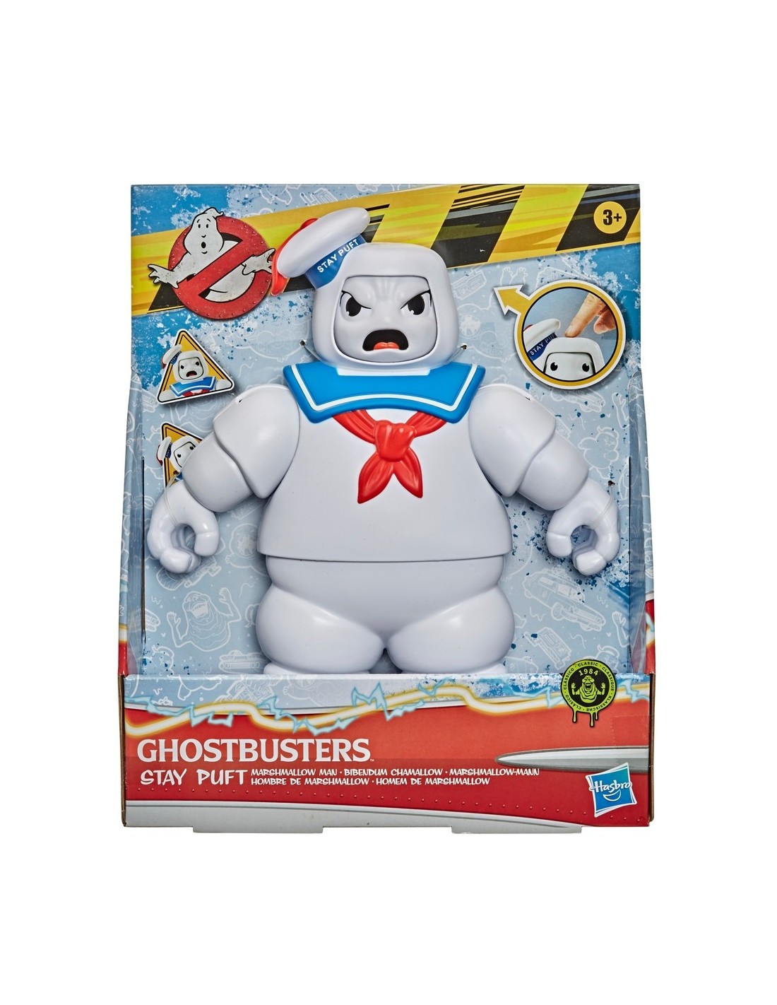 GHOSTBUSTERSPERSONAJE EMBLEMÁTICO DE LOS CAZAFANTASMAS: Imagina que caminas como un gigante entre los rascacielos de Nueva York con este juguete Hombre de Marshmallow Playskool Heroes, inspirado en el universo de los Cazafantasmas