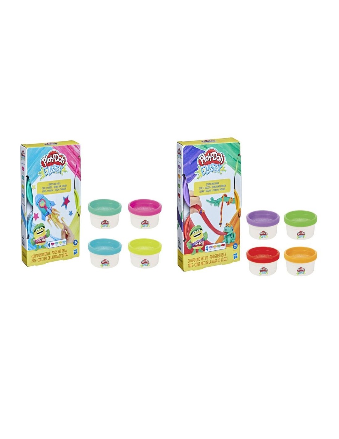 Estira tu imaginación con la masa Play-Doh Elastix para niños de 2 años en adelante. Es una versión moldeable y elástica de la masa no tóxica Play-Doh, con el mismo aroma distintivo que todos conocemos y adoramos. Su textura y elasticidad son perfectas para hacer queso fundido Play-Doh, serpientes y muchas otras cosas que a los niños les divierte crear. Como la MASA, es fácil de usar para moldear diferentes formas. Este set Play-Doh cuenta con 4 colores diferentes en latas de 56 gramos y es un estupendo complemento para sets Play-Doh Kitchen Creations y otros kits de herramientas (se venden por separado). Hasbro, Play-Doh y todas las propiedades relacionadas son marcas registradas de Hasbro. UNA MANERA DIFERENTE DE JUGAR CON PLAY-DOY: La masa Play-Doh Elastix tiene el mismo aroma y se parece a la masa Play-Doh que todos conocemos y adoramos, pero es más elástica, lo que ofrece nuevas formas de jugar ESTIRA Y MOLDEA: ¡Es colorida, elástica y moldeable! Estírala con las manos para crear un efecto muy agradable, o úsala como si fuera MASA para crear casi todo lo que imagines 4 COLORES DIFERENTES: Estira tu imaginación con los 4 colores incluidos en este set Play-Doh para niños de 2 años en adelante. Cada lata se cierra herméticamente y contiene 56 gramos de masa súper elástica y divertida FUNCIONA CON PLAYSETS PLAY-DOH (SE VENDEN POR SEPARADO): Complementa tus playsets Play-Doh Kitchen Creations y otros kits de herramientas Play-Doh con este set de masa Elastix (se venden por separado)